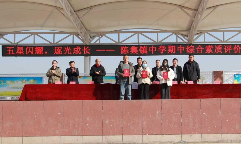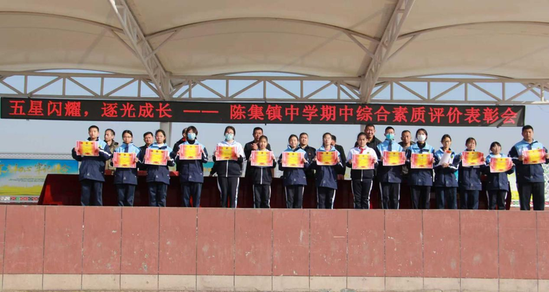 鲁网11月28日讯 为了树立先进典型,展现学校在素质教育方面的丰硕成果,为全体师生营造了见贤思齐、奋发向上的育人氛围,11月28日下午,菏泽鲁西新区陈集镇中学成功举办“五星闪耀,逐光成长”期中综合素质评价表扬会。