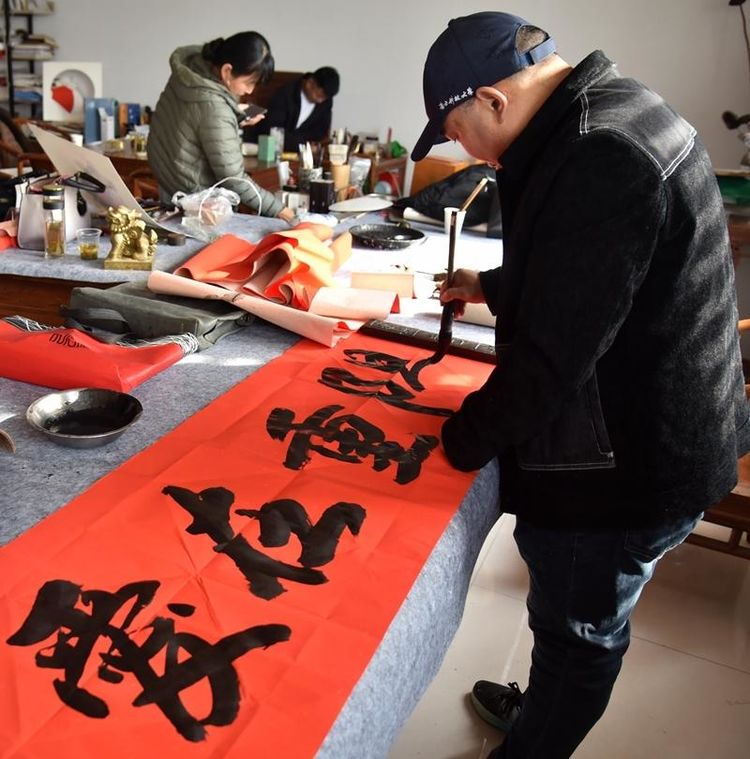 活动中,鲁西新区美术家协会的书画家们发挥专业特长,现场挥毫泼墨,创作了寓意吉祥的书画作品。他们以“福”字书法传递祝福,用牡丹画作象征富贵安康,笔触间流淌着对老人们的敬意与关爱。