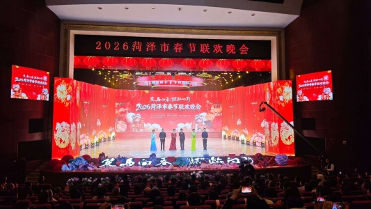 2月10日晚,2026菏泽市春节联欢晚会在菏泽大剧院精彩上演。